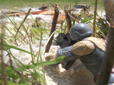 God View Here the Joes are coming up into the brush area of the island. Little do they know what lies ahead. |